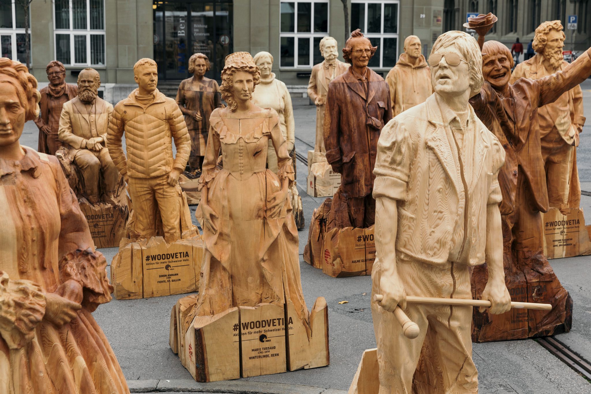 Dans le cadre de la campagne #WOODVETIA,, 19 statues en bois plus vraies que nature ont été exposées depuis janvier 2017.