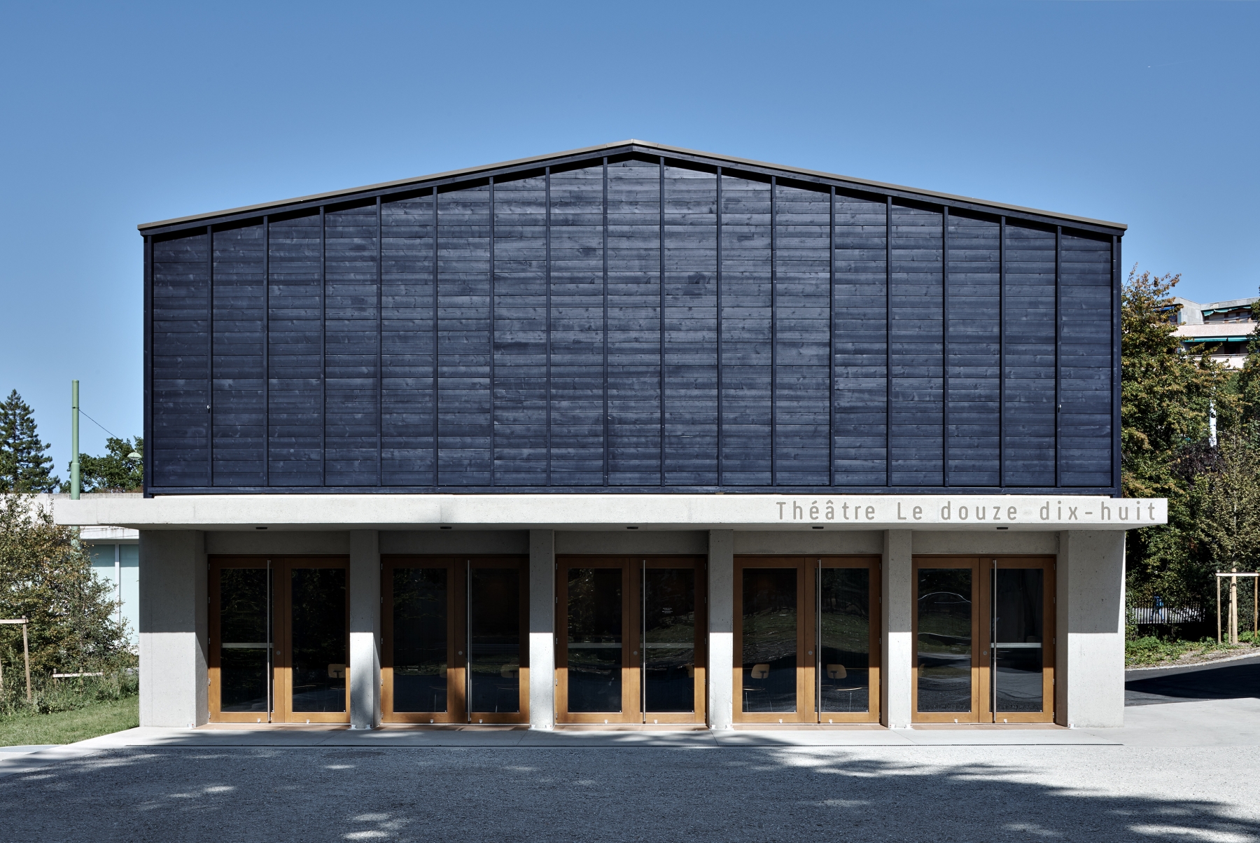 Le nouveau Théâtre est un volume indépendant et compact positionné parallèlement à l’ancienne Ferme Pommier.
