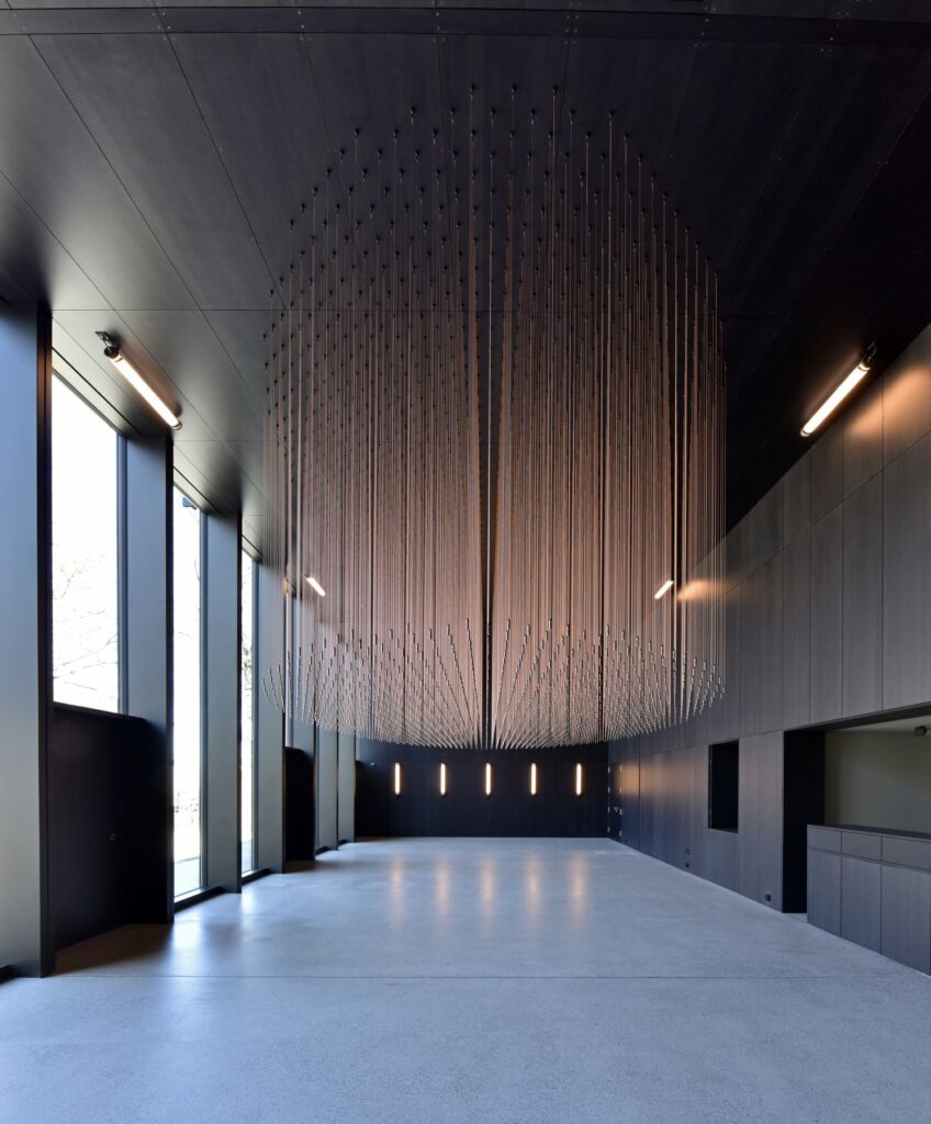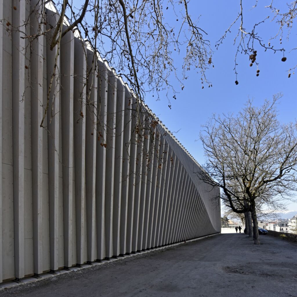 Implanté au cœur de la ville de Genève, le Pavillon de la danse accueille une salle de spectacle consacrée à la danse contemporaine ainsi que ses annexes. Les 84 portiques de bois qui composent cette structure déplaçable se déforment, comme autant d’instantanés capturés par chronophotographie. Un pas de Danse qui se serait figé. La construction préfabriquée démontre la capacité du bois à répondre à un programme de haute exigence acoustique : une salle de spectacle en milieu urbain.
