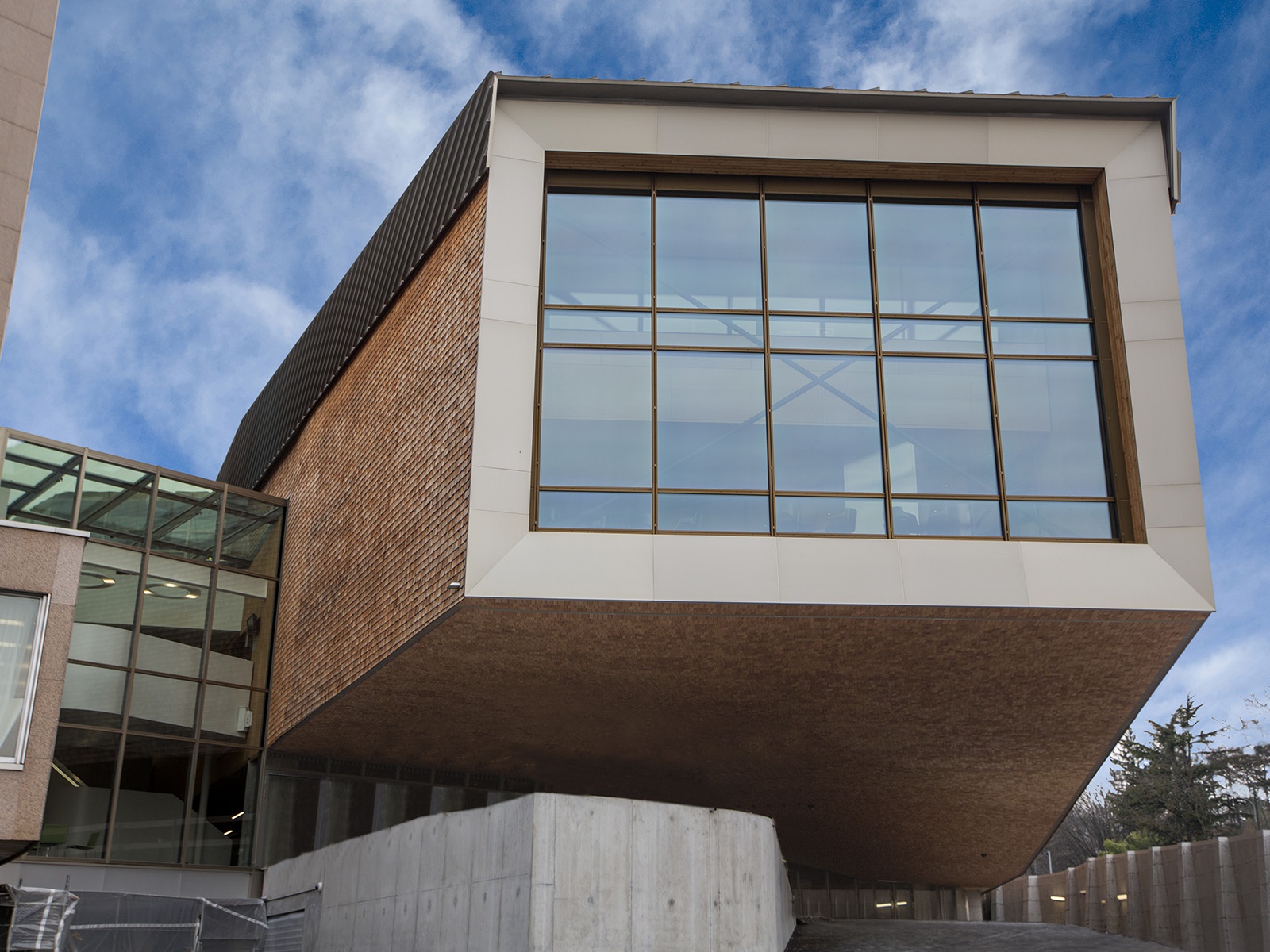 La prouesse technique de ce bâtiment futuriste, outre sa géométrie complexe, c’est son porte-à-faux de 34 mètres.