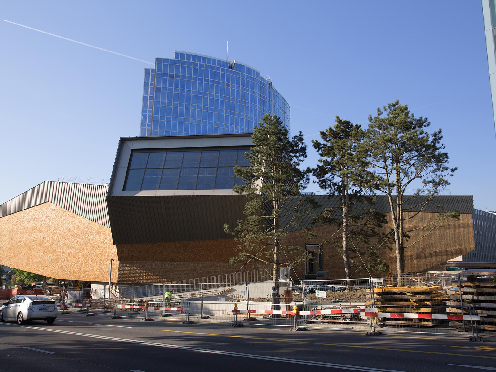Pour le compte de l’Organisation Mondiale de la Propriété Intellectuelle (OMPI), cette réalisation donne la priorité à la durabilité, utilisant du bois local, la lumière naturelle, une ventilation hybride réalisée par une association entre mode naturel et mode mécanique, et un système de climatisation fonctionnant avec de l’eau en provenance du lac Léman, dans le cadre du projet Genève-Lac-Nations.